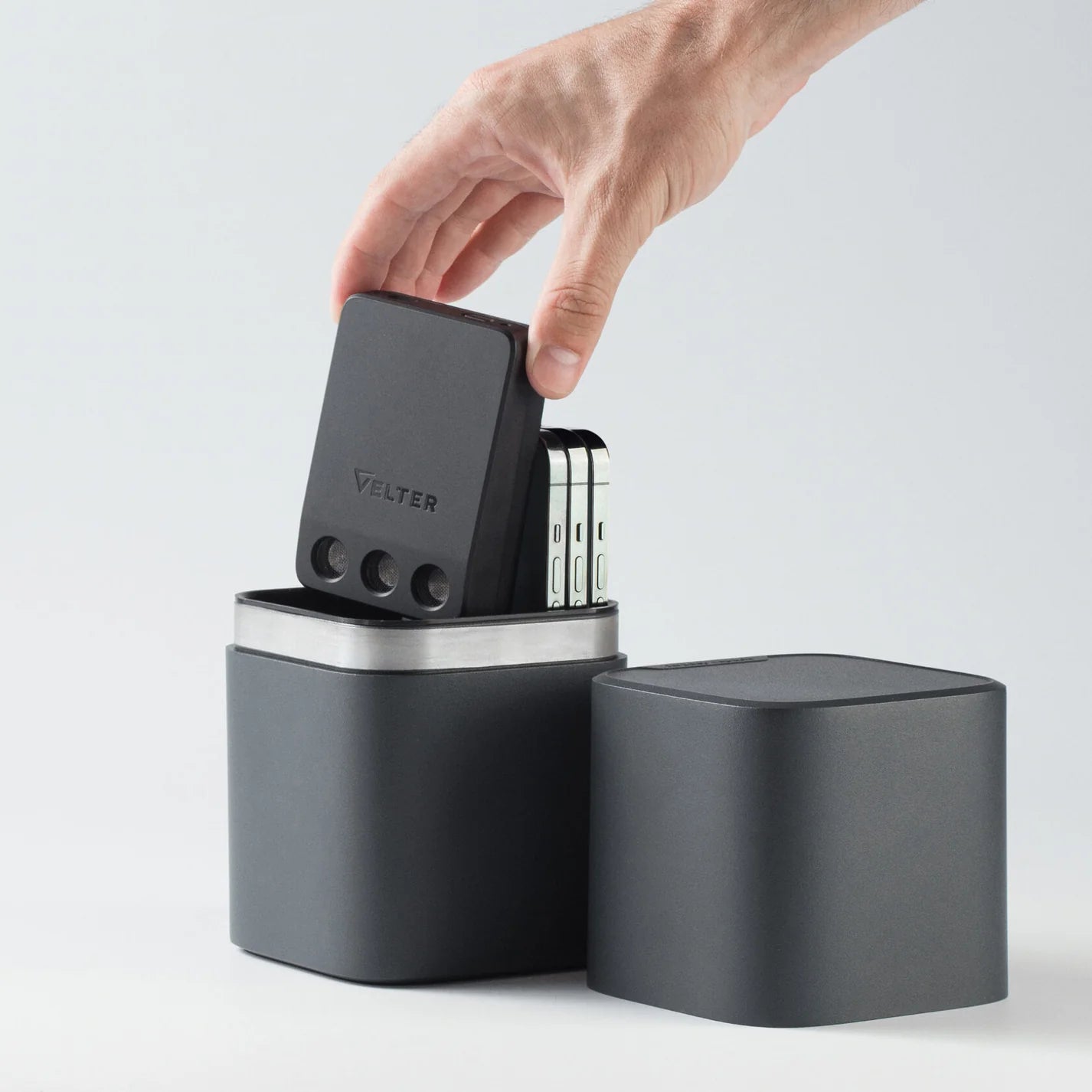 Jammer is an ultrasonic microphone suppressor, designed to ensure private conversations and complete protection from phone-based eavesdropping. The device generates ultrasonic interference, rendering nearby acoustic signals impossible to record. Specifically crafted for use inside a Faraday capsule, Jammer provides enhanced security for crucial negotiations and sensitive discussions.